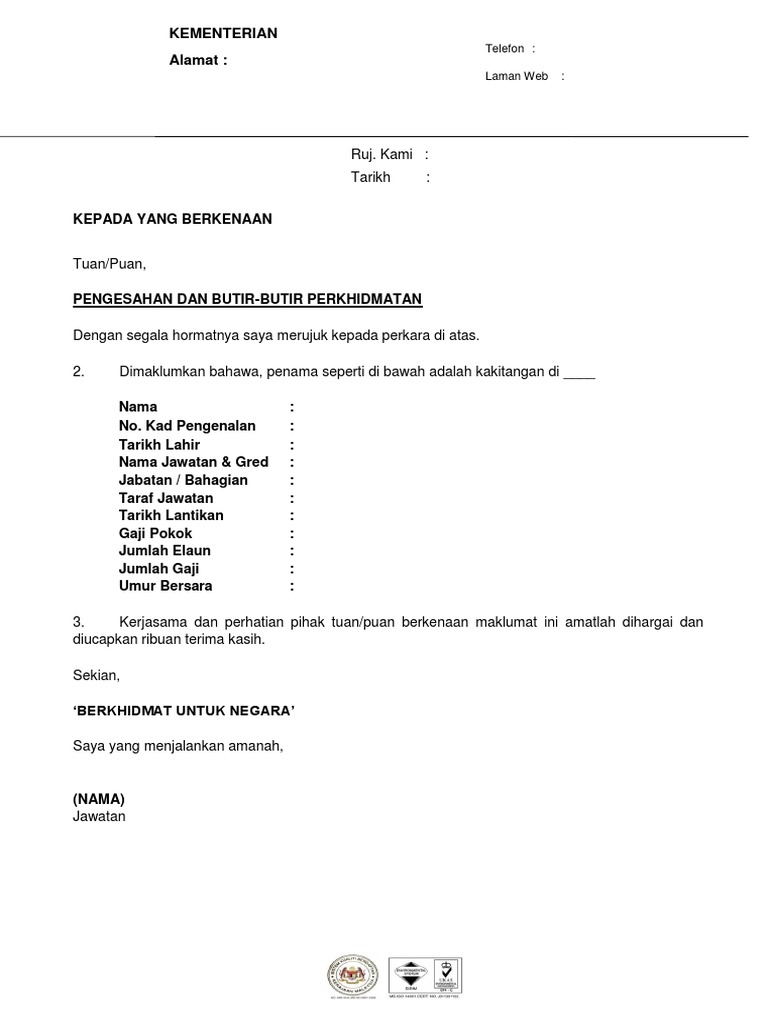 Contoh Surat Pengesahan Perkhidmatan Pdf